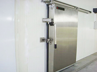 门扇以聚氨酯为保温层,面板材料为不锈钢,其传热系数为0.22W/m²•K(门厚150mm),使门具有良好的隔热性和密封性。门扇和地坪、门框结合处采用特殊形式定制,采用特制橡胶条密封。为防止门扇和门框或地坪结合处冻结,在门四周加有低电压、精致的电加热装置。